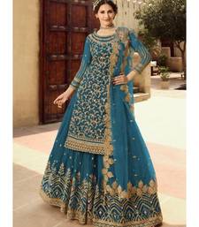 Teal net party wear salwar kameez semi stitched